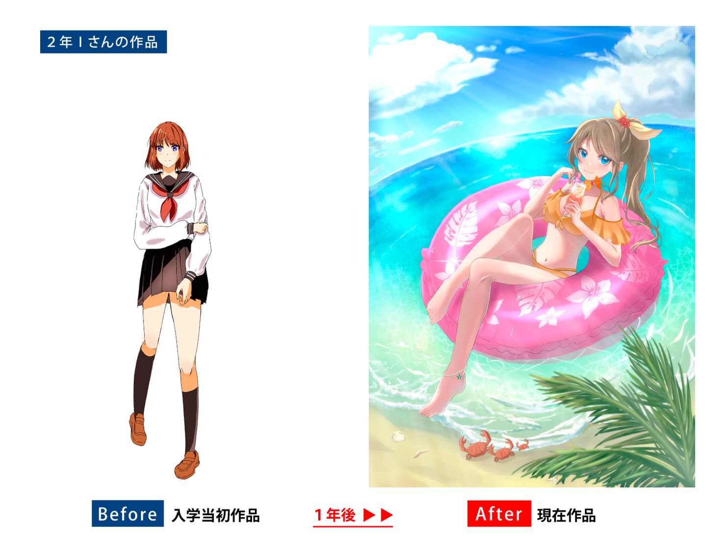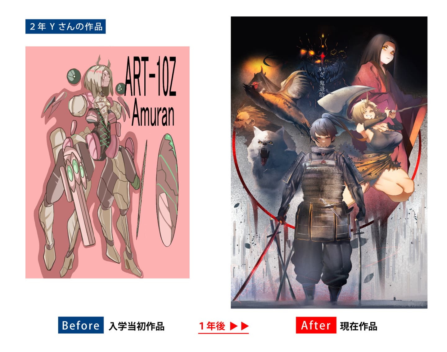 デッサン等の基本的な技術からしっかりと学び、現場で活かせる高度な技術と知識を身につけます。実践的な授業の中でそれぞれの個性を伸ばし、夢の実現をサポート!